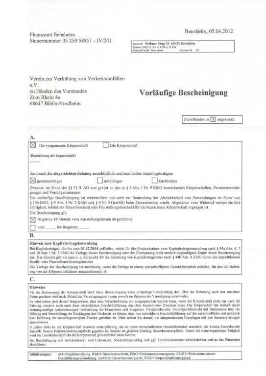 Aufnahme in die Liste für Bußgeldzuweisungen bei der GStaA Bremen: